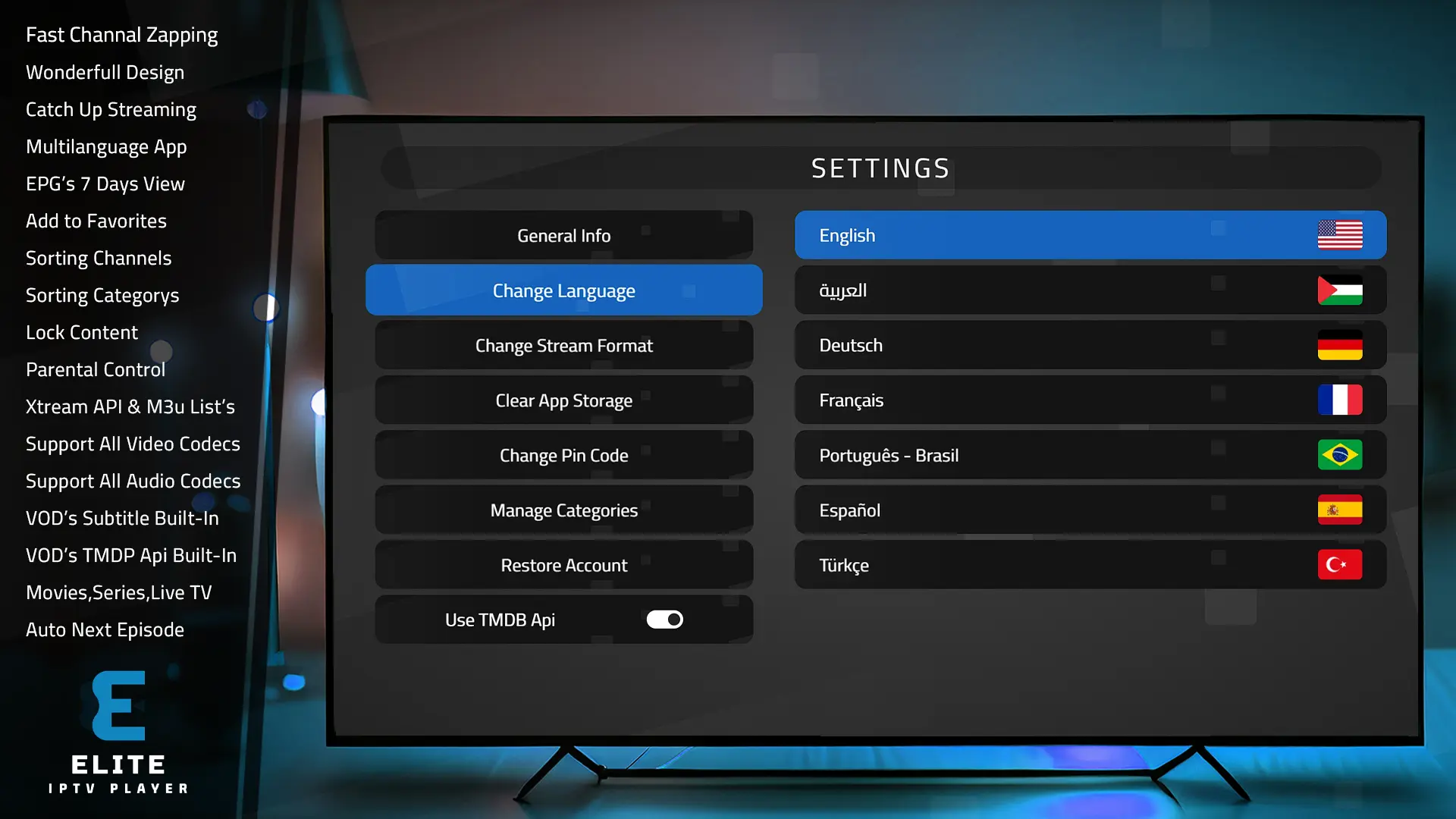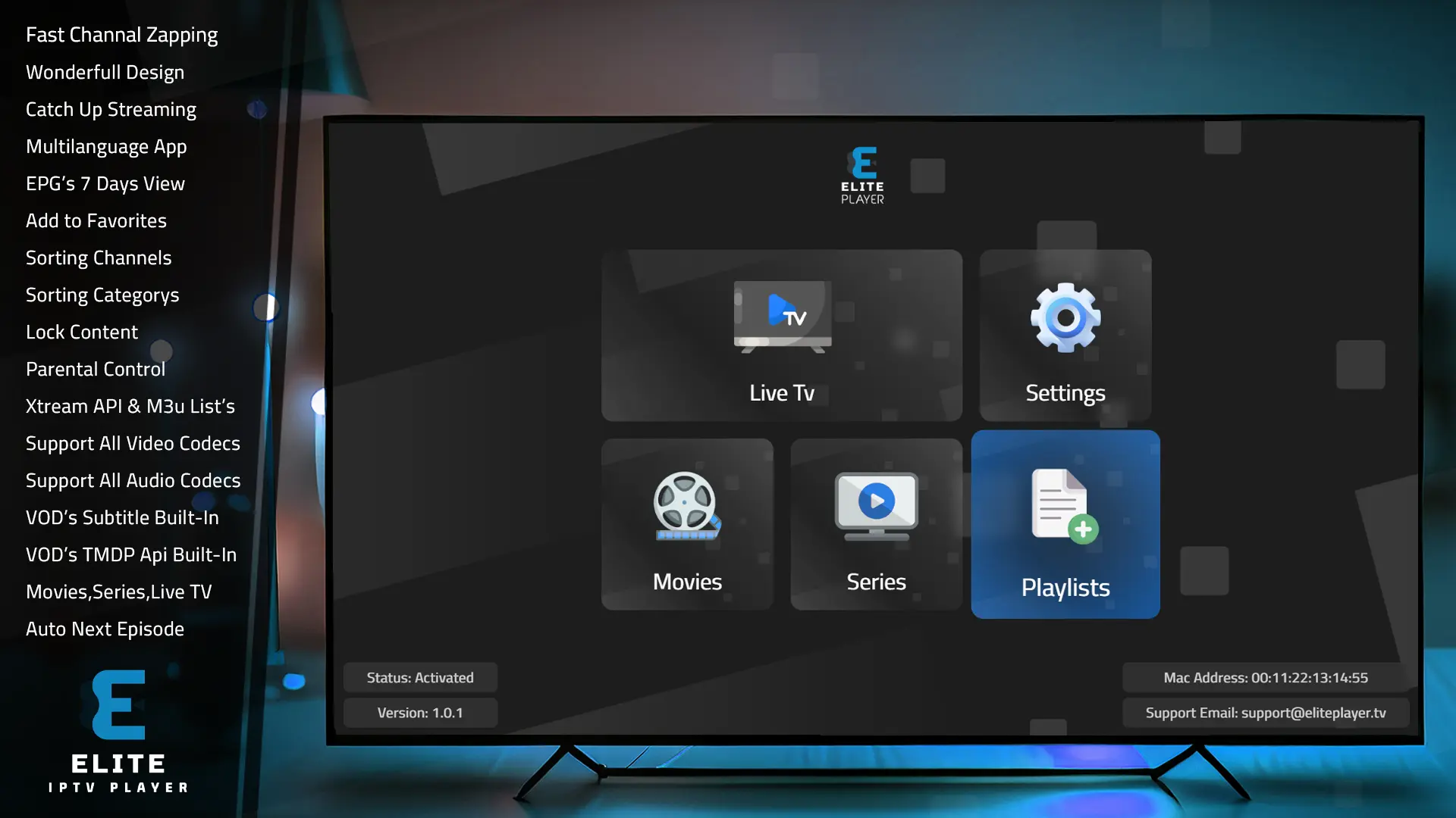 Elite Player Uygulaması, son kullanıcıların Canlı TV, Filmler ve Diziler gibi içeriklerini TV cihazlarında izlemelerine olanak tanıyan muhteşem bir video oynatıcıdır.