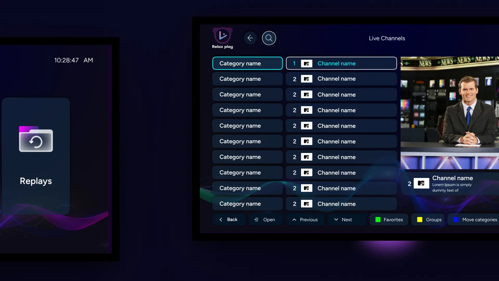 Relax Play, en sevdiğiniz kanalları, canlı TV yayınlarını ve TV programlarını izlemenize yardımcı olacak bir oynatıcıdır.